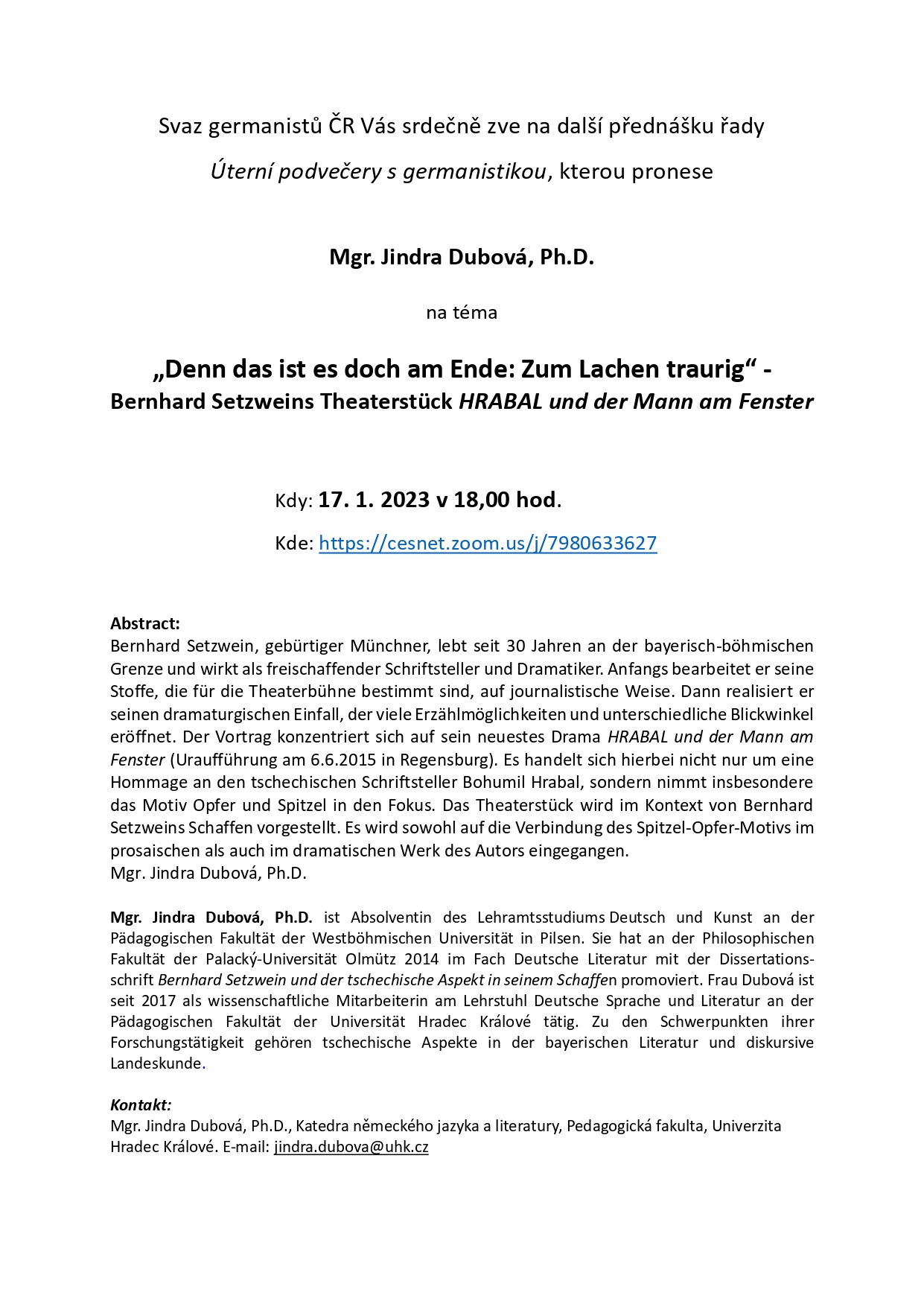 Srdečně Váz zveme na další díl z přednáškové řady Svazu germanistů ČR, který se bude konat 17. 1. 2023 od 18:00.