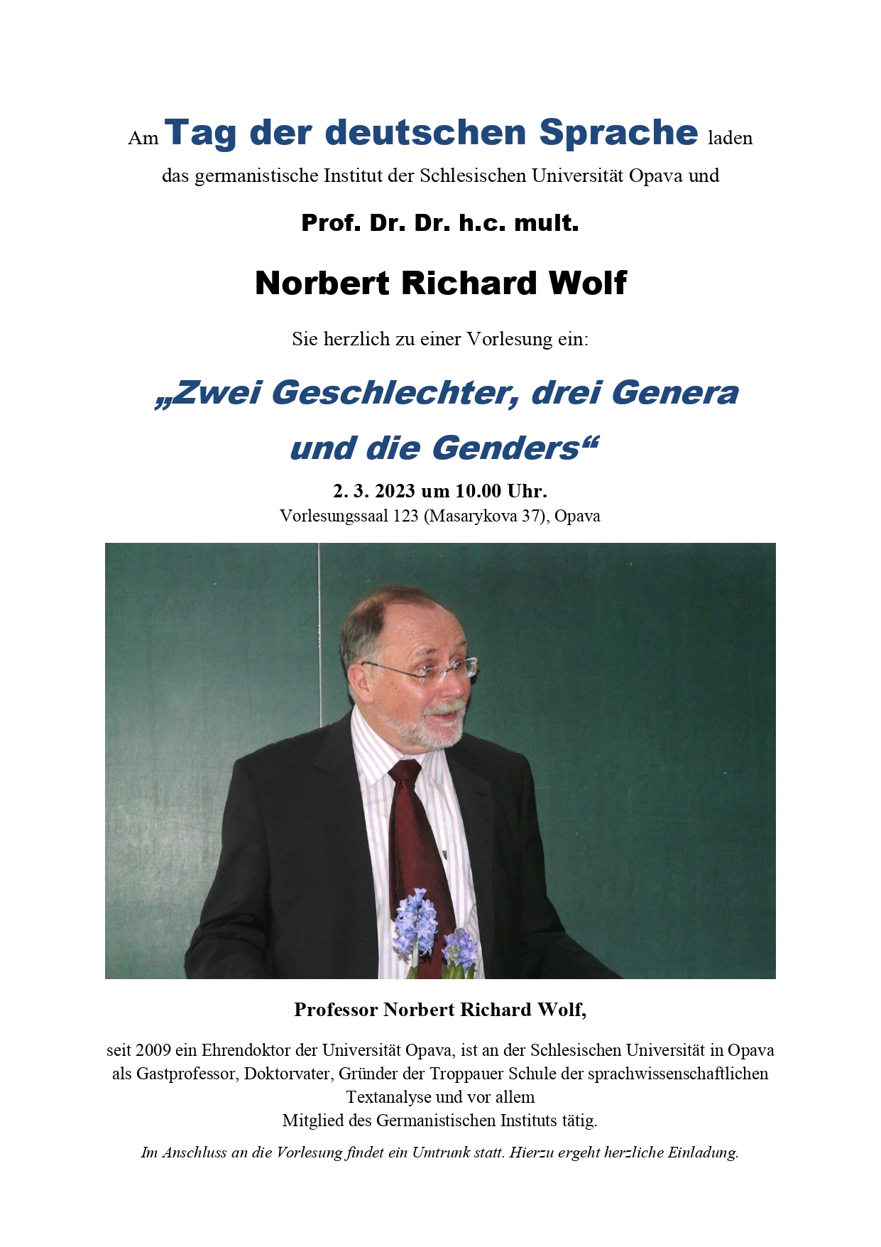 Pozvánka – Tag der Deutschen Sprache – přednáška prof. Wolfa