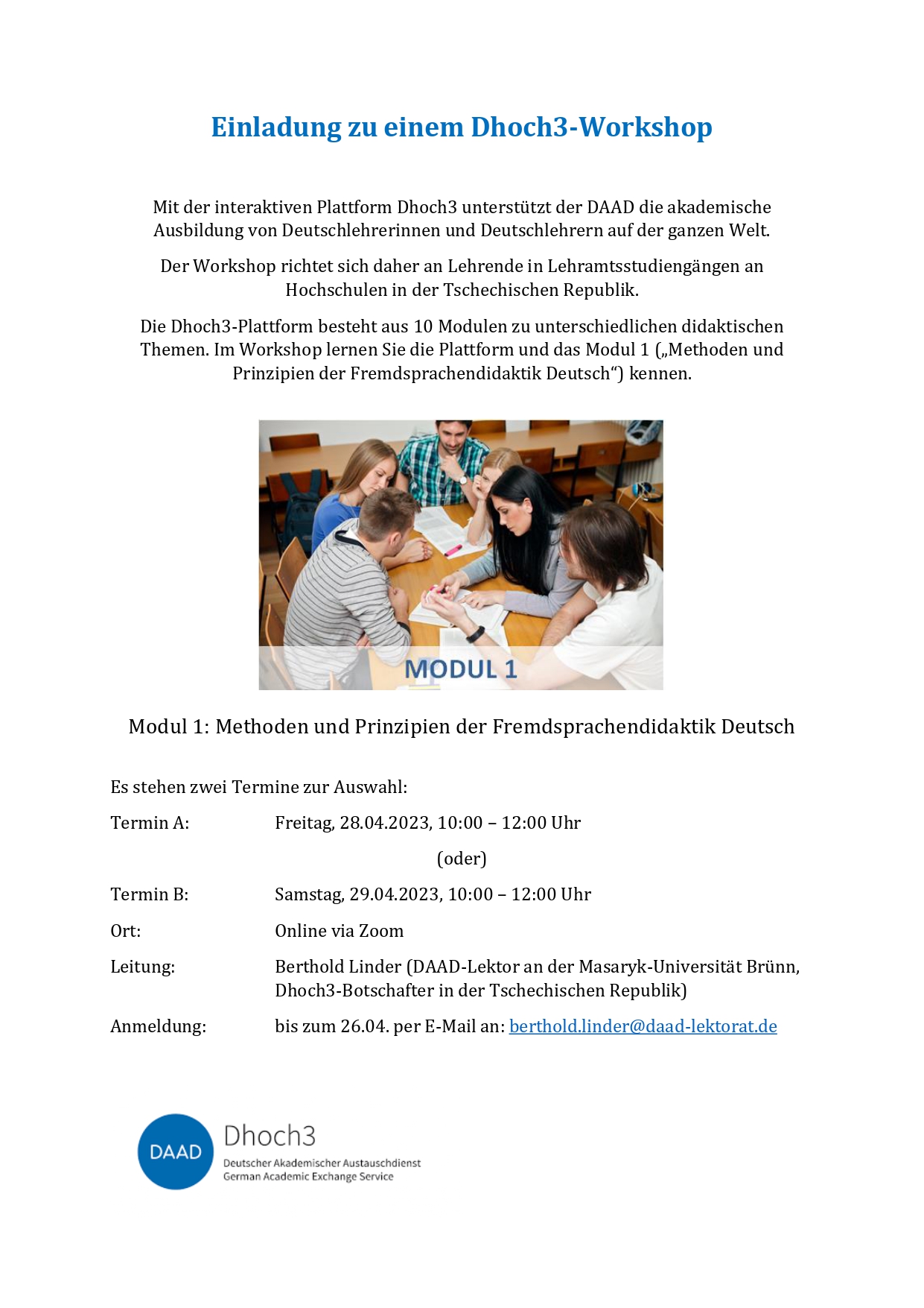 Srdečně Vás zveme na online workshop Dhoch3 pořádaný DAAD.