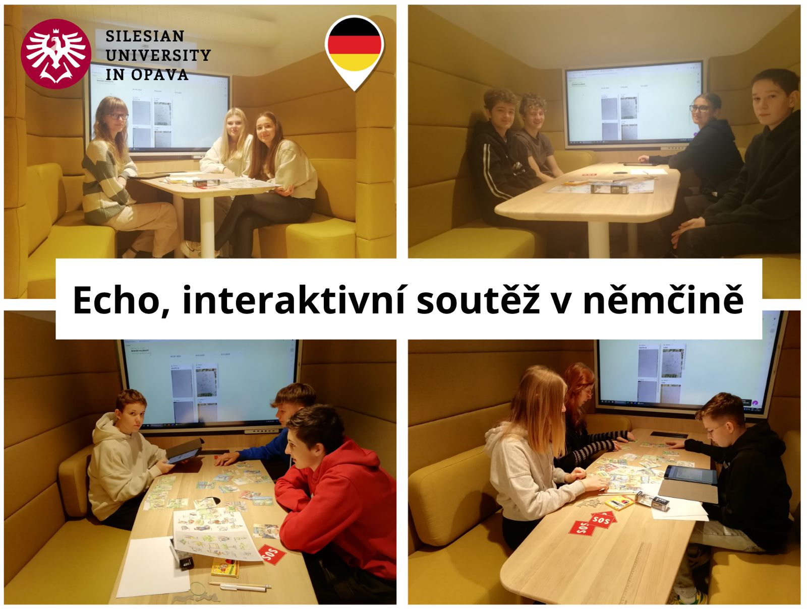 V pondělí 13. 11. 2023 na rektorátu Slezské univerzity v Opavě žáci ZŠ Edvarda Beneše poprvé vyzkoušeli novou interaktivní hru Echos, kterou připravila Pro Lingua pod vedením paní Evy Czechové. Námětem se stala pohádka bratří Grimmů Brémští muzikanti. Pomocí interaktivní aplikace se před vámi rozprostře audio puzzle, které vás dovede až ke kreativní části hry, kde společně se spoluhráči dotváříte děj známé pohádky. Všem týmům se podařilo splnit oba úkoly a my máme velkou radost, že jsme prožili zábavné dopoledne s němčinou.